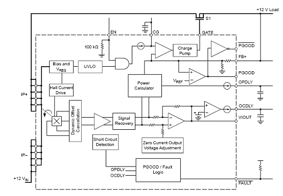 Allegro Micro公司的ACS761是采用霍尔电流传感器技术的热插拔控制器,是适用于12V的效率更高的控制器. ACS761采用三种保护:用户选择延迟的过流故障,以及短路保护,主要用于各种板卡的热插拔控制.本文介绍了ACS761的主要特性和优势,方框图以及应用电路图. The ACS761 combines Allegro Hall-effect current sense technology with a hot-swap controller resulting in a more efficient integrated controller for 12 V applications. By eliminating the need for a shunt resistor, the I2R losses in the power path are reduced. When the ACS761 is externally enabled, and the voltage rail is above the internal UVLO threshold, the internal charge pump drives the gate of the external FET. When the load voltage reaches its target value PGOOD is asserted high. When a fault is detected, the gate is disabled while simultaneously alerting the application that a fault has occurred. The integrated protection in the ACS761 incorporates three levels of fault protection, which includes a Power Fault with user-selectable delay, an Overcurrent Fault threshold with userselectable delay, and Short Circuit protection, which disables the gate in less than 2 μs. These faults are indicated to the host system via the Fault pin and are cleared upon reasserting enable high. ![]() ACS761特性和优势: Hall-effect current monitor—no external sense resistor required PGOOD and PG O O D indication Analog output voltage (factory trimmed for gain and offset) proportional to applied current External high-side FET gate drive 240V*A power fault protection with user-selectable delay Overcurrent fault protection with user-selectable delay Fault protection isolates failed supply from output in < 2 μs 1.5 mΩ internal conductor resistance Active low latched Fault indicator output signal User controlled soft start / hot-swap function Logic enable input pin 10.8 to 13.2 V, single-supply operation 2 kV ESD protection for all pins ![]() 图1.ACS761功能方框图 ![]() 图2. ACS761应用电路图 |