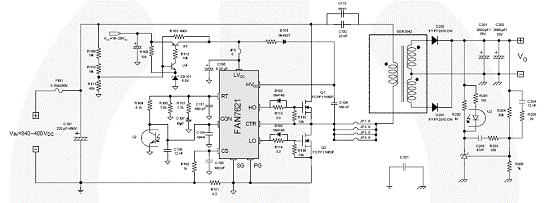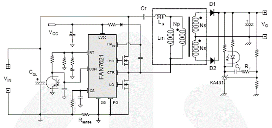 图2.FAN7621典型应用电路(LLC 谐振半桥转换器)