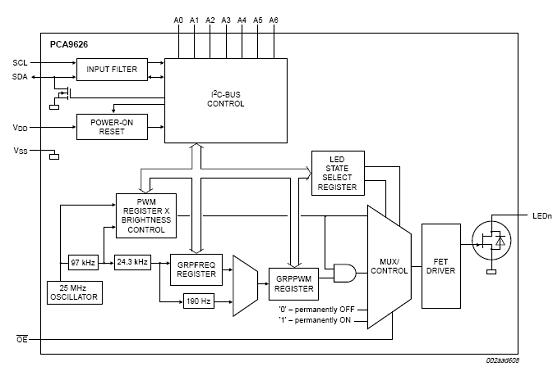 driverThe PCA9626 is an I2C-bus controlled 24-bit LED