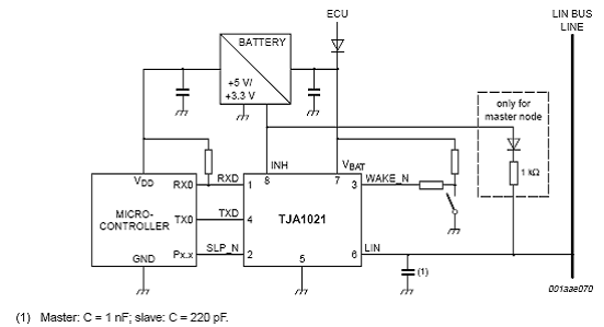 The TJA1021 is the interface between the Local Interconnect Network (LIN)
