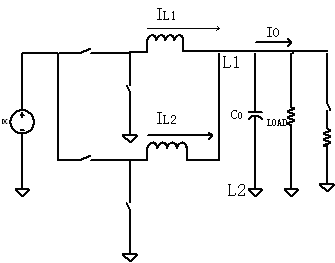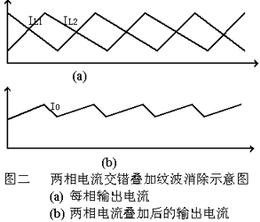 由(1)式知电流纹波限制在10%。为了减小电感值,必须减小电流纹波。人们提出了多相交错并联技术,来实现这一目的。