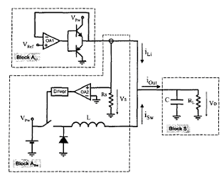 其中,BUCK拓扑是主供电电路,而推挽线性电路为辅助电路。即混合供电电源采用线性电源与开关电源同时供电。其中线性电源由一个低功率放大器和电源输出模块构成,它的输出端直接连接到模块S(由电阻RL和电容C组成)。参考电压VRef加在比较器1的同相输入端,输出加到反向输入端。线性电源控制环比开关电源的具有宽的多的带宽。线性电源的输出电流iLi在Rs上的压降Vs作为开关电源误差性号。在负载Step-up发生时,线性电源提供必要的电流来保证电容上电压的稳定。而电流iLi的增加引起isw的增加,而isw的增加使iLi降低到0。当负载Step-down发生时,线性电源为电容提供一个电流泄放回路,以此来保持电容上电压的稳定。