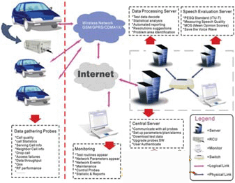 自动监测是目前广泛被运营商应用的一种网络测试方式,其采用数据采集单元(RCU)来代替测试工程师+测试电脑+测试终端的传统测试方式,通过将数据采集单元放置在出租汽车、高速大巴、轮船等交通工具上,由控制中心向其发送测试指令,使得数据采集单元能实现测试数据的自动记录并通过无线Modem进行实时上传。监控中心可对测试情况进行实时监测和统计,并自动生成网络质量评估分析报表,从而实现测试数据的全自动化处理,很好地弥补了传统路测在人力资源、设备调用、采集数据量等多方面的不足。