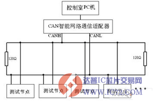 系统结网络构如图1所示。该系统主要由上位计算机及监控软件、基于PCI总线的CAN智能网络通信适配器及与其相配套的设备驱动程序(WDM)、现场控制节点单元和基于CAN现场总线其他功能模块组成。