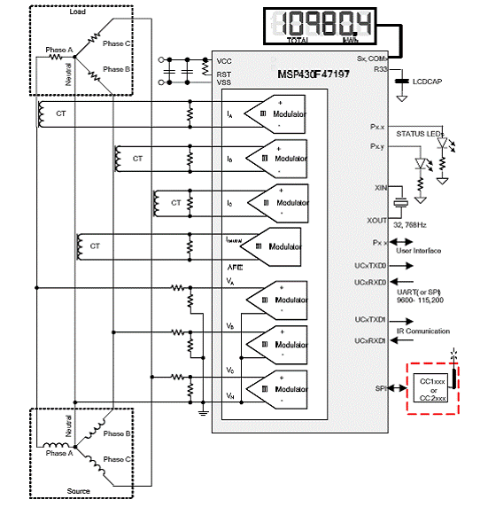 Implementation of a Three-Phase Electronic Watt-Hour Meter Using the MSP430F471xx This application report describes the implementation of a three phase electronic electricity meter using the Texas Instruments MSP430F471xx system-on-chip (SOC) processor.